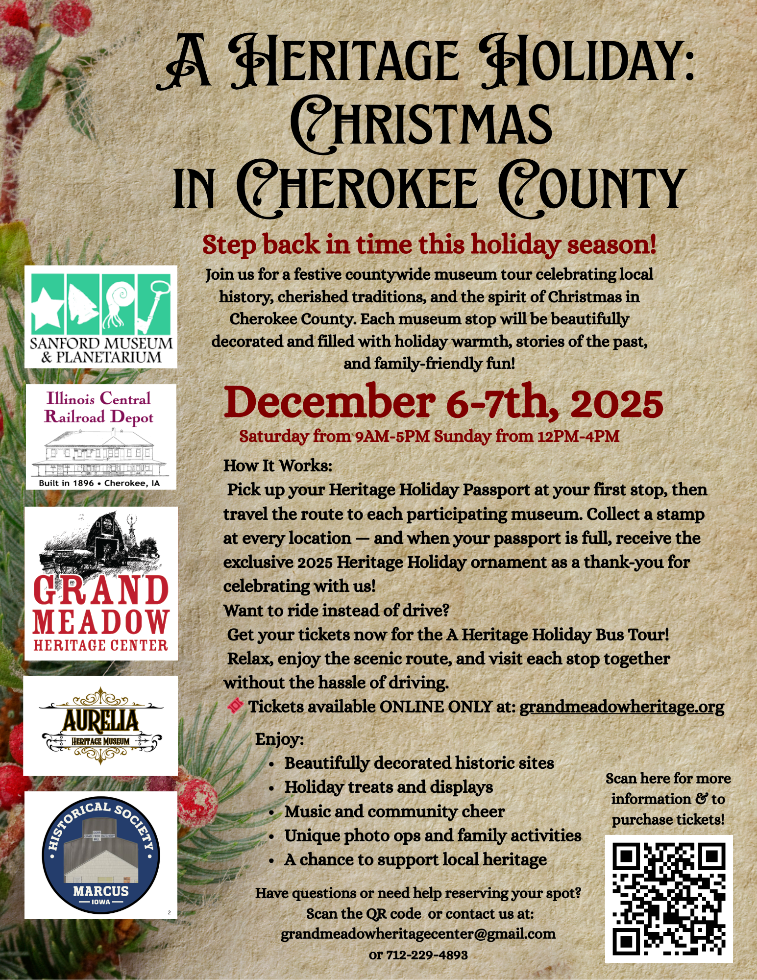 Climb aboard and celebrate the season with a nostalgic journey through Cherokee County’s holiday history! The A Heritage Holiday Bus Tour takes you on a festive adventure to five beautifully decorated museums, each showcasing its own unique Christmas charm.